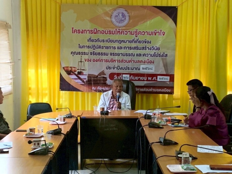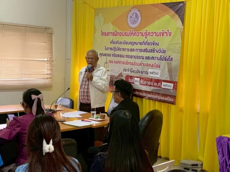 วันศุกร์ที่ ๒๖ กันยายน ๒๕๖๘ นำโดยนายบุญ จันวงษา นายกองค์การบริหารส่วนตำบลดงเมือง พร้อมด้วยคณะผู้บริหาร พนักงานส่วนตำบล พนักงานจ้าง ร่วมดำเนินกิจกรรมโครงการฝึกอบรมให้ความรู้ความเข้าใจเกี่ยวกับระเบียบกฎหมายที่เกี่ยวข้อง ในการปฏิบัติราชการ และการเสริมสร้างวินัย คุณธรรม จริยธรรม จรรยาบรรณ และความโปร่งใสขององค์การบริหารส่วนตำบลดงเมือง ประจำปีงบประมาณ พ.ศ ๒๕๖๘ โดยมี นายสถาปนิก พะโยโค ปลัดองค์การบริหารส่วนตำบลดงเมือง เป็นผู้บรรยายในครั้งนี้