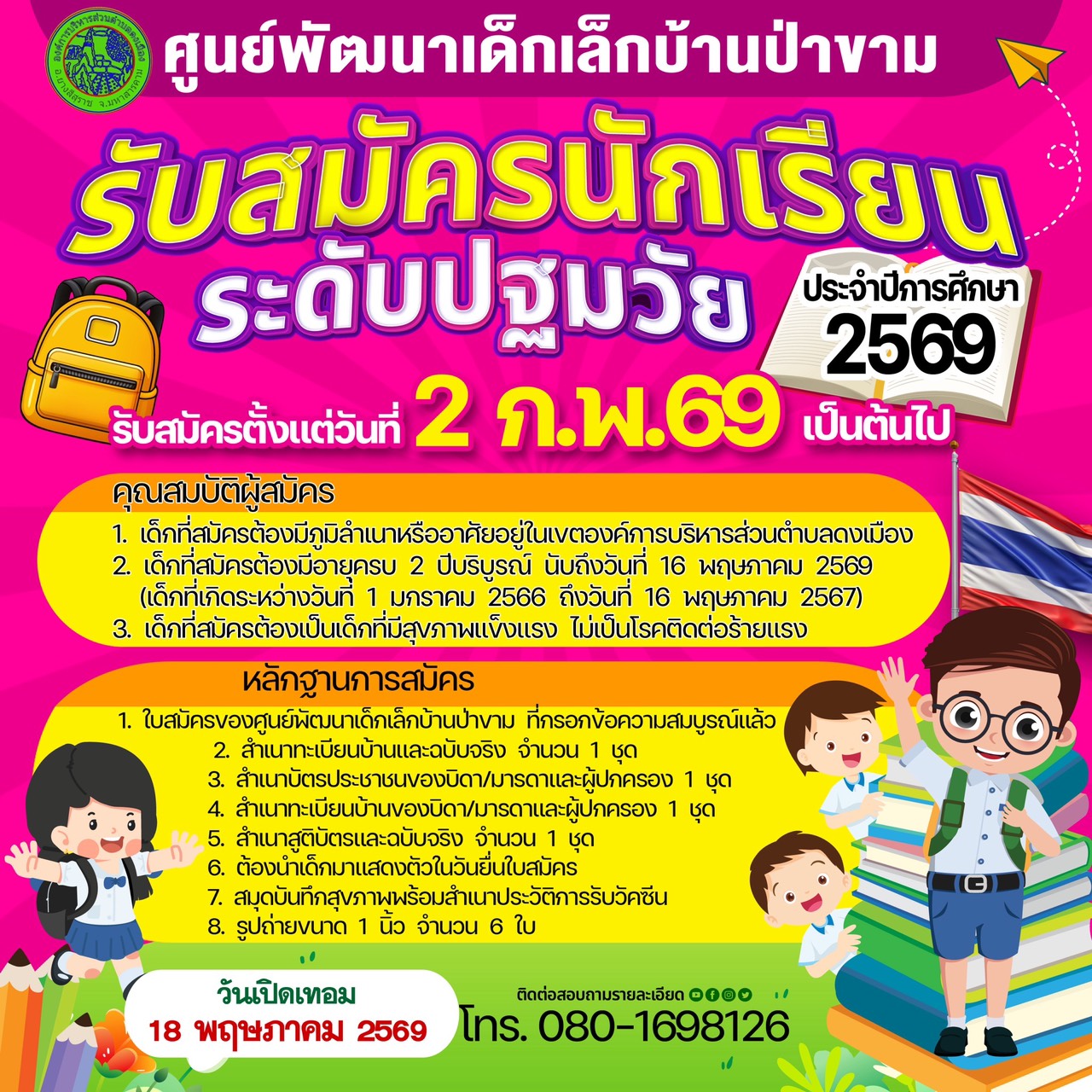 ประกาศองค์การบริหารส่วนตำบลดงเมือง เรื่อง รับสมัครนักเรียนเพื่อเข้าเรียนในศูนย์พัฒนาเด็กเล็กบ้านป่าขาม ประจำปีงการศึกษา ๒๕๖๙